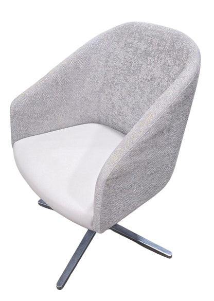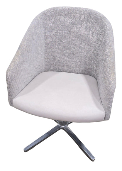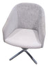 A durable swivel chair with a grey finish, cushioned bottom, and silver base—built for hotels, rentals, or workspaces.